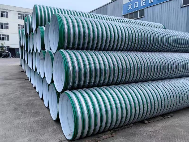 DRPE鋼塑複合增強纏繞排水(shuǐ)管σπ✔φ采用(yòng)全新高(gāo)密度聚 乙烯顆粒熱(r∑±✔±è)熔雙層共擠技(jì)術(shù)制(zhì)闆并纏繞成型&$,生(shēng)産工(gōng)藝獨特;管材 內(nèi)層為(wèi' ♠)雙層增強(外(wài)綠(lǜ)內(nèi)白(bái))€×π闆帶,光(guāng)滑平整,內(nèi)層加入超高(gāo)分(fēn♦₩☆")子(zǐ) 量聚乙烯顆粒,以增強管道(dào)的(de)耐磨抗腐性∑Ω延長(cháng)管道(dào)的(de)使用(®↔yòng)壽命;管 材外(wài)表面所使用(>↕ yòng)的(de)鍍鋁鋅鋼帶加強肋呈螺旋形, 波紋狀結構,以增 加管道≤♥(dào)的(de)抗外(wài)壓能(néng)力•§∑α